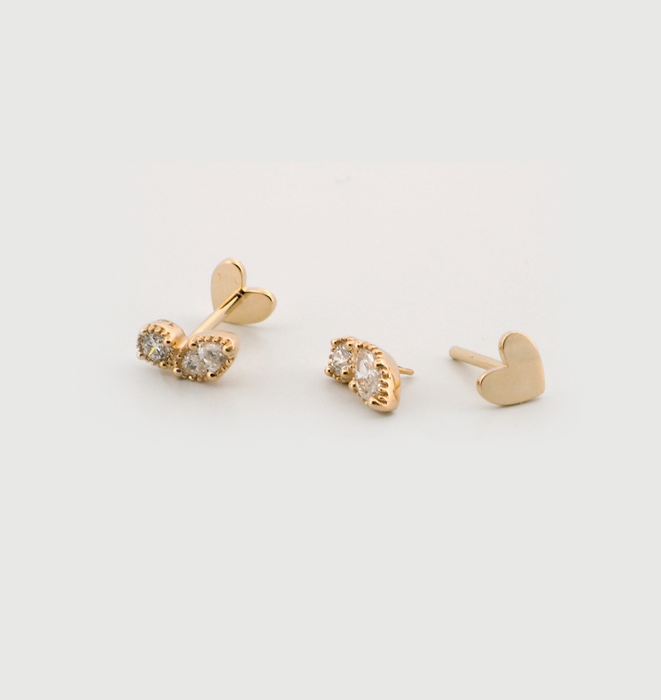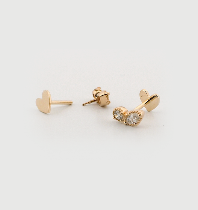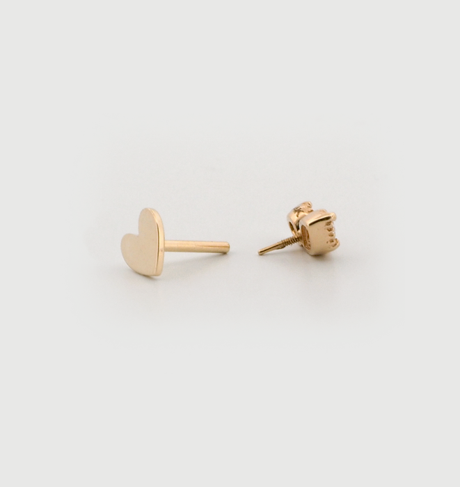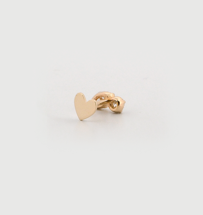 Flat back internally thread piercings feature a secure, flat closure that screws onto a the gold post from the front, offering a comfortable and stylish option for daily wear in cartilage piercings.