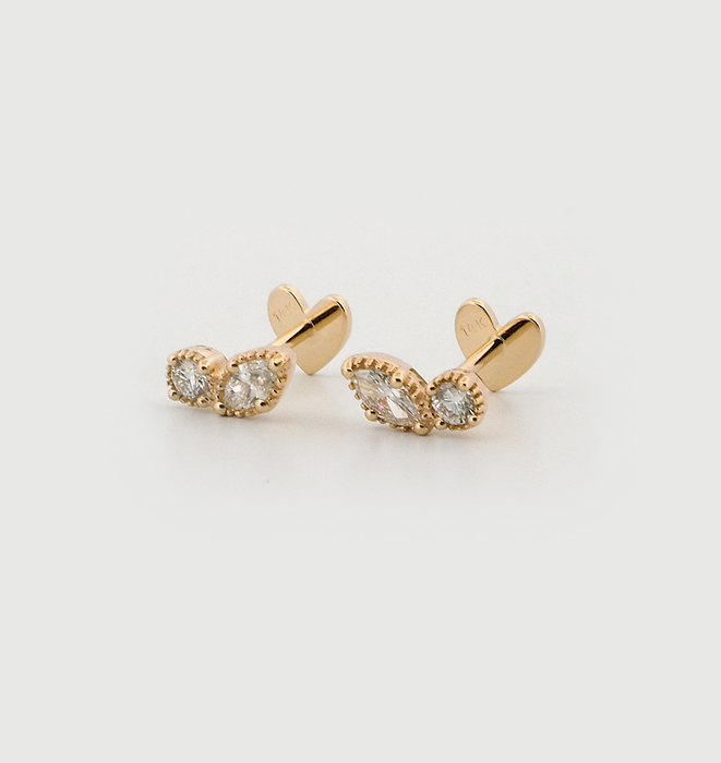 Limited edition solid gold cartilage earring combining round and marque brilliant cut, lab grown diamonds. Set in a bezel 'finger' setting. Perfect addition to your curated ear stack.