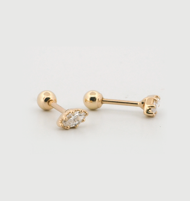 Limited edition solid gold cartilage earring set with marque shape lab grown diamonds set in a multi prong setting.