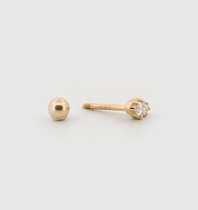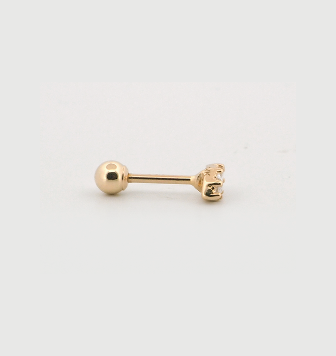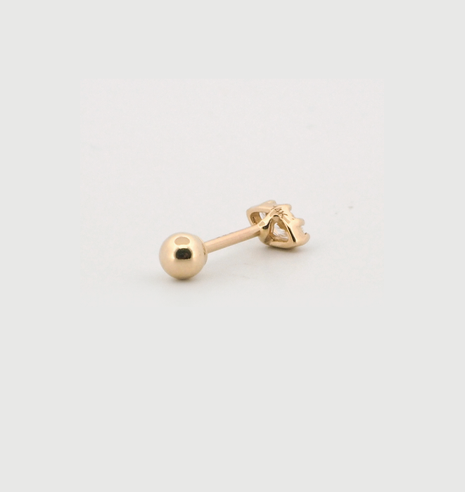 Ball back thread piercings feature a secure, rounded ball closure that screws onto a metal post, offering a comfortable and stylish option for daily wear in earlobe, helix, tragus, and lip piercings.