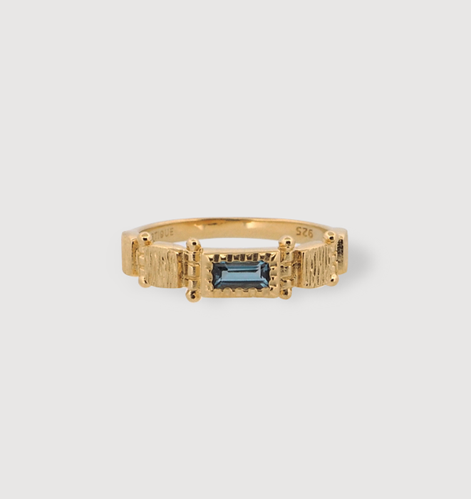Designed by Kartique in Fremantle, the Eden collection draws from our beautiful surroundings. Set with natural London Blue Topaz and made from sterling silver and gold vermeil, the Eden ring is a beautiful statement on its own or stacked to create our unique style.