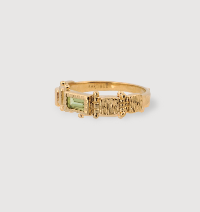 Designed by Kartique in Fremantle, the Eden collection draws from our beautiful surroundings. Set with natural Peridot and made from sterling silver and gold vermeil, the Eden ring is a beautiful statement on its own or stacked to create our unique style.