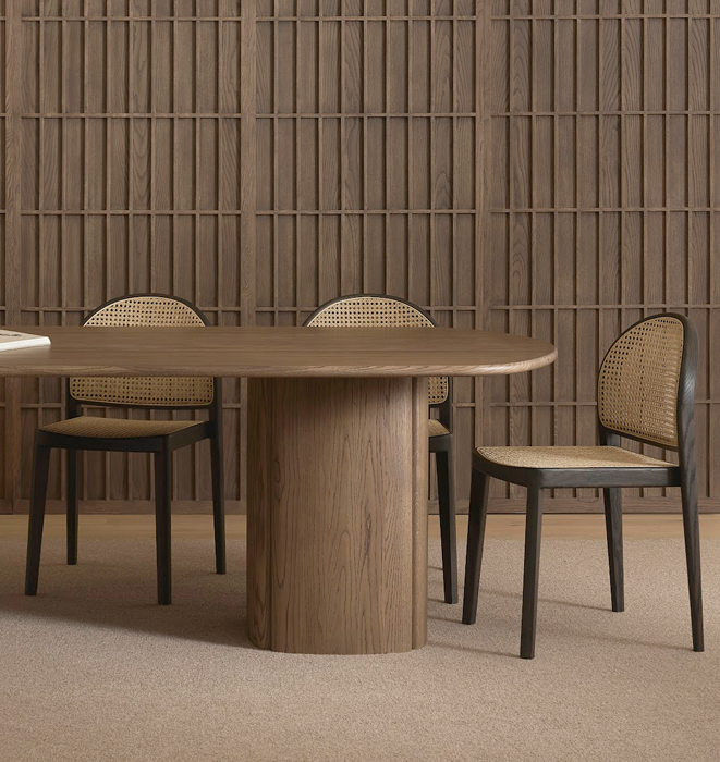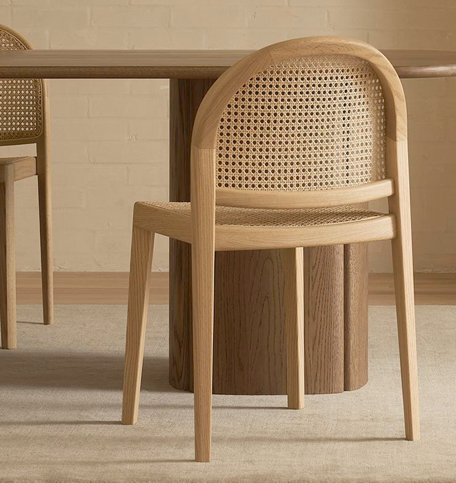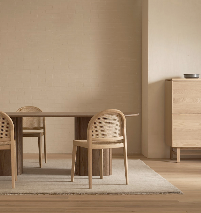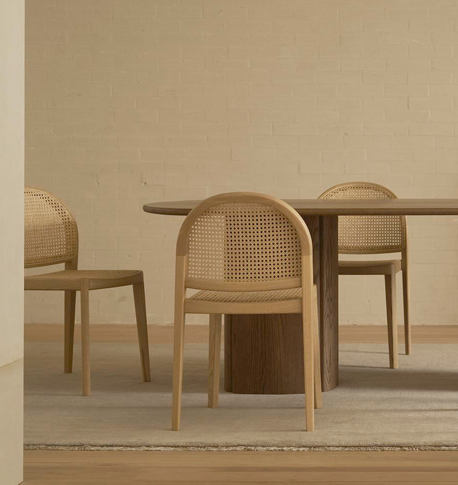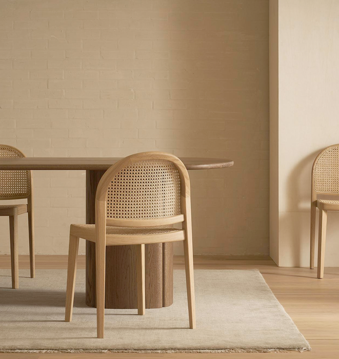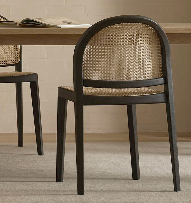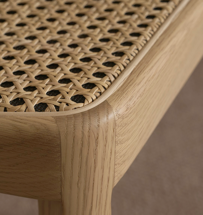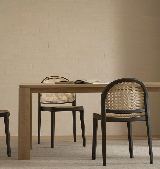The Luk Chair is defined by its iconic arch silhouette referencing classic lightweight furniture typologies. The design is both complex and restrained in form, focusing on flowing surfaces which emphasise wood grain and the natural beauty of cane weave rattan. Light and shadow permeate through the weave, adding to the sense of weightlessness. Neatly stacking and developed with comfort first, Luk delivers with its holistic functionality and uncluttered looks..
