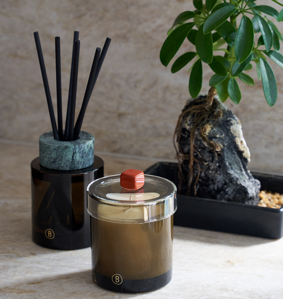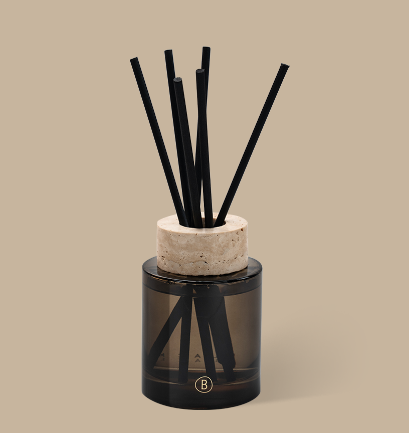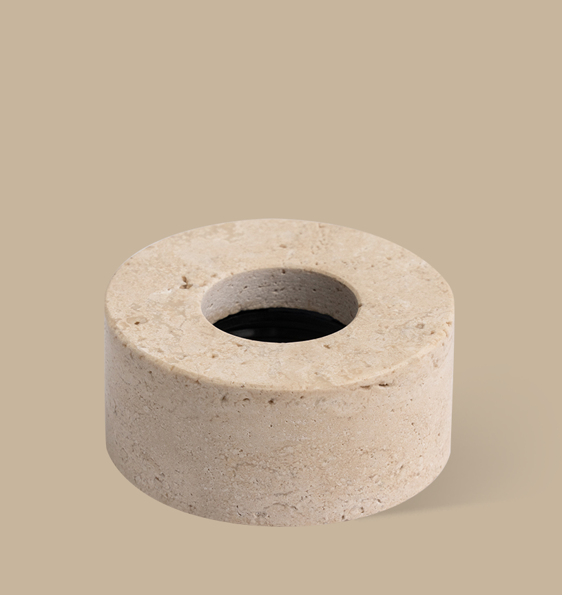 Handcrafted from natural marble or travertine, each collar features unique veining and texture. Designed to sit securely on the diffuser bottle, it adds both stability and a touch of sculptural elegance, turning a simple object into a refined décor detail.