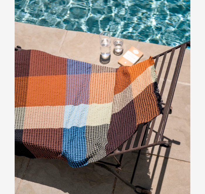 The versatile Cabin Towel is a lightweight, quick-drying alternative to a traditional towel. The towel adds fun colour and texture to your bathroom or kitchen. The nostalgic plaid combines bright tones with warm hues to create a playful, unexpected colour palette. Made with cotton in a relaxed waffle weave with a fringe detail.