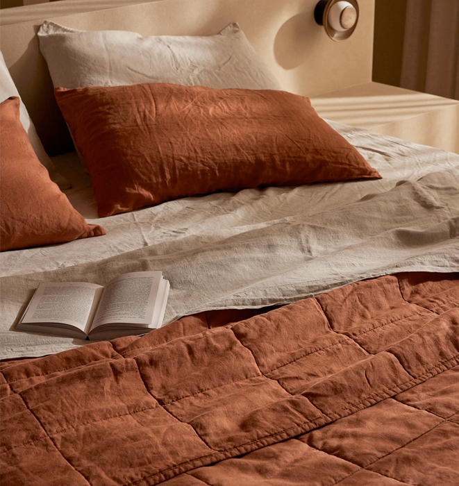 Cultiver 100% Linen Quilted Bedcover | Sienna | IN STORE ONLY
