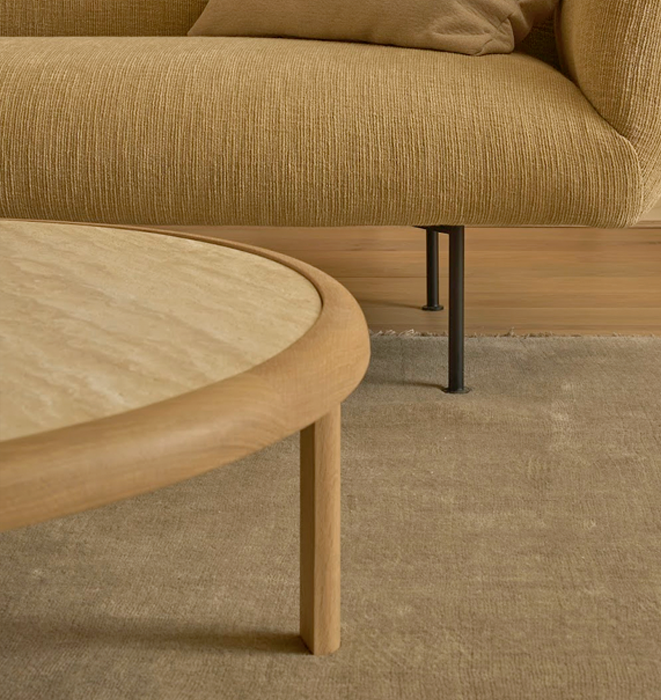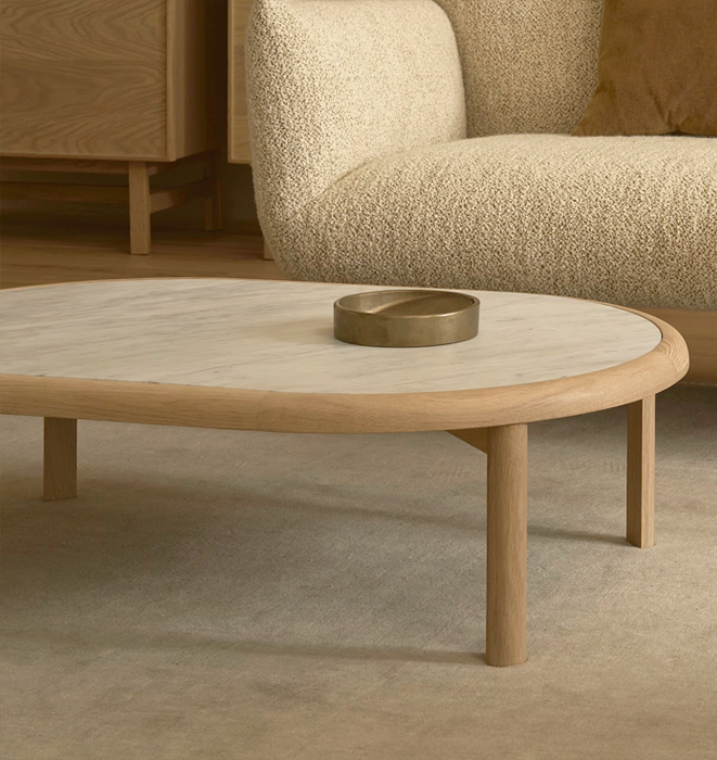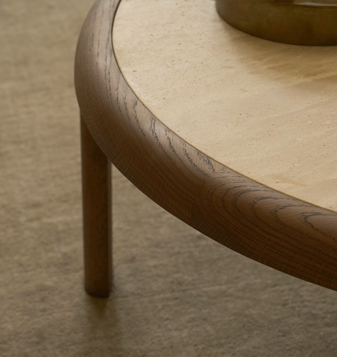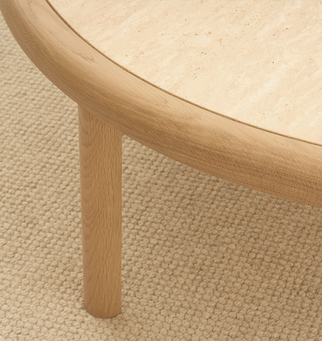 The Meld table was designed as an exploration of continuity and contrast: a contrast between the hard, cold, flat stone and the soft, warm, curved wood, which is juxtaposed with the continuity of form as the wooden frame extends the stone tabletop and resolves it with a rounded, soft edge.