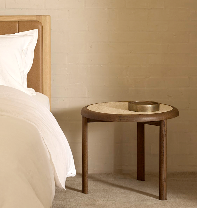 The Meld table was designed as an exploration of continuity and contrast: a contrast between the hard, cold, flat stone and the soft, warm, curved wood, which is juxtaposed with the continuity of form as the wooden frame extends the stone tabletop and resolves it with a rounded, soft edge.