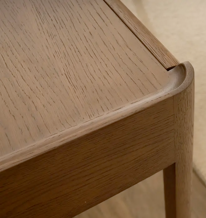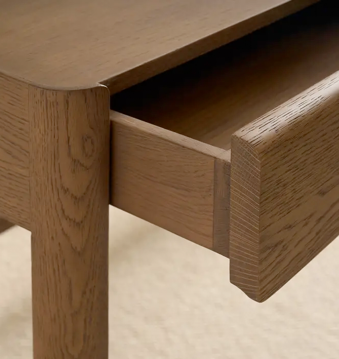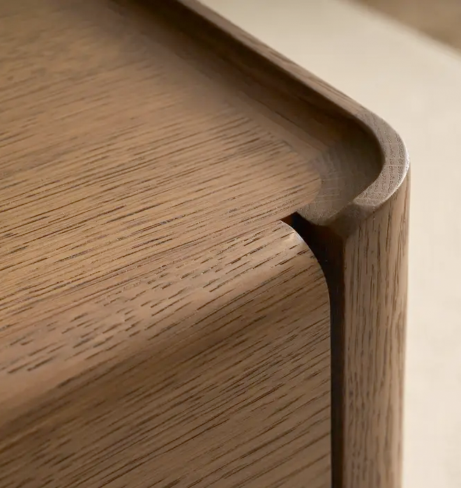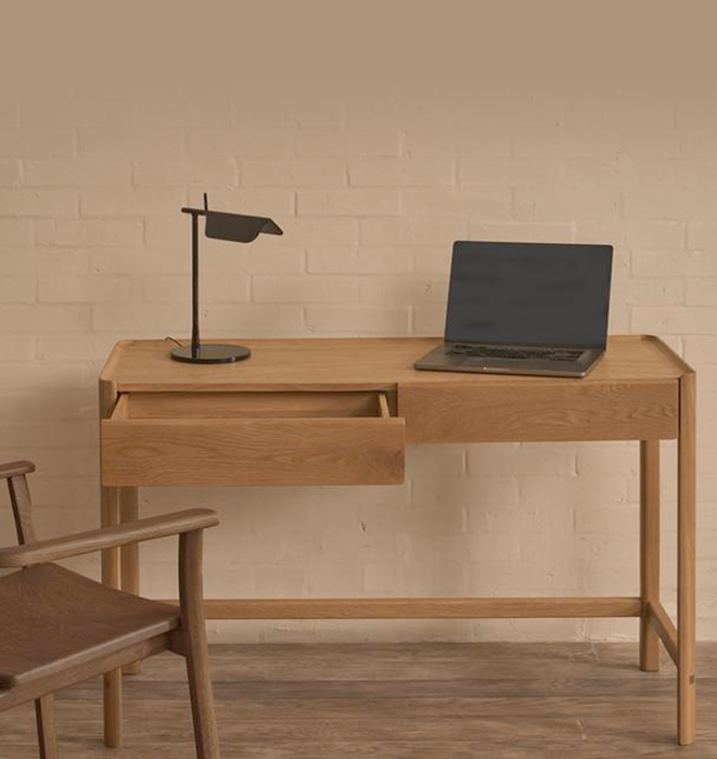 Nell Desk is framed by sharp edges and soft surfaces that result in a minimalist, timeless and functional workspace. The scalloped top edge transitions into rounded drawers with ample storage. Perfect for small to medium spaces, Nell desk invites ideas and creativity through architectural forms and crafted tactile surfaces.